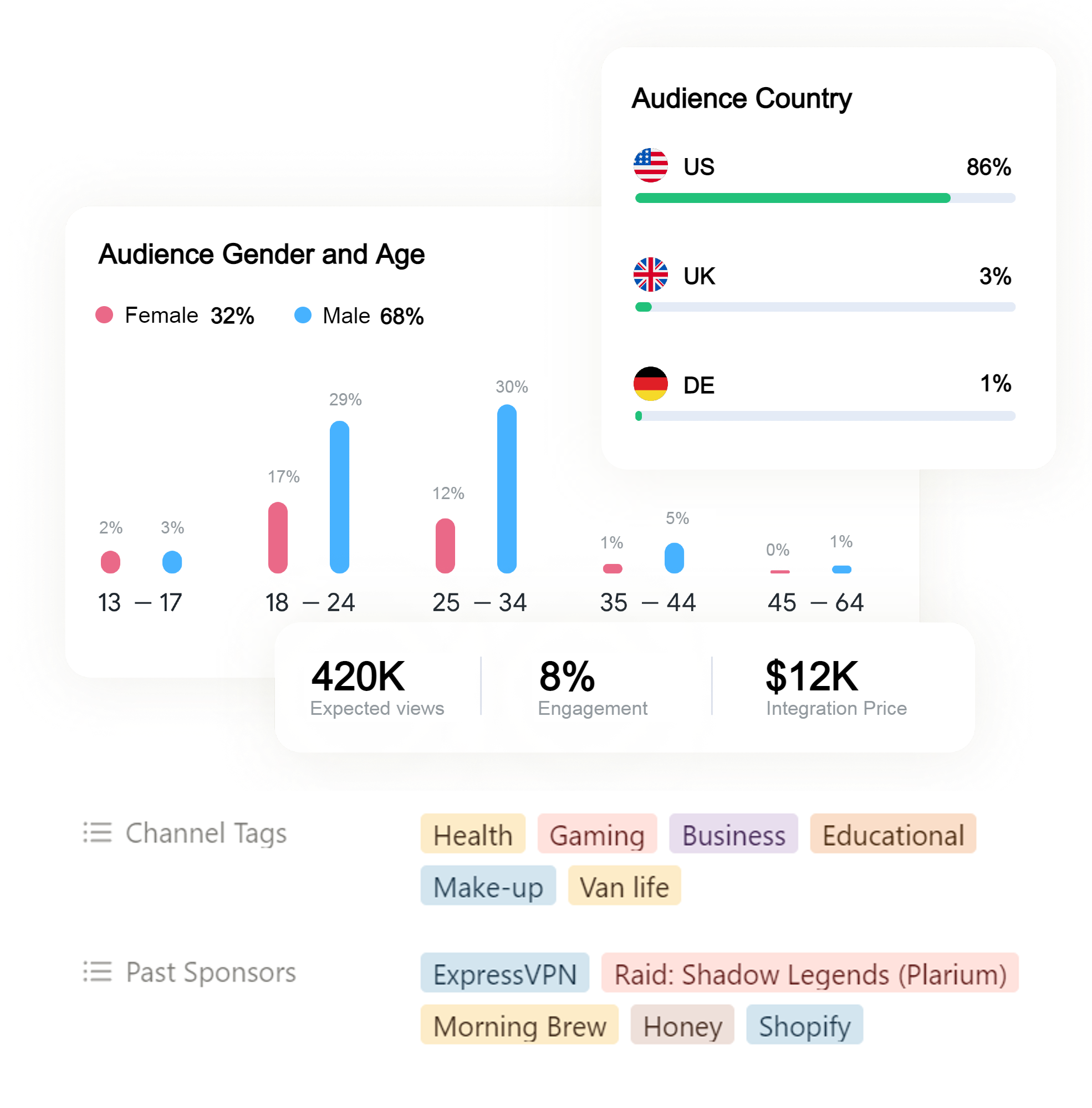 Daily suggestions of creators that you can book in 1 click. Analyzed by our AI, then curated by our team to maximize your ROI.